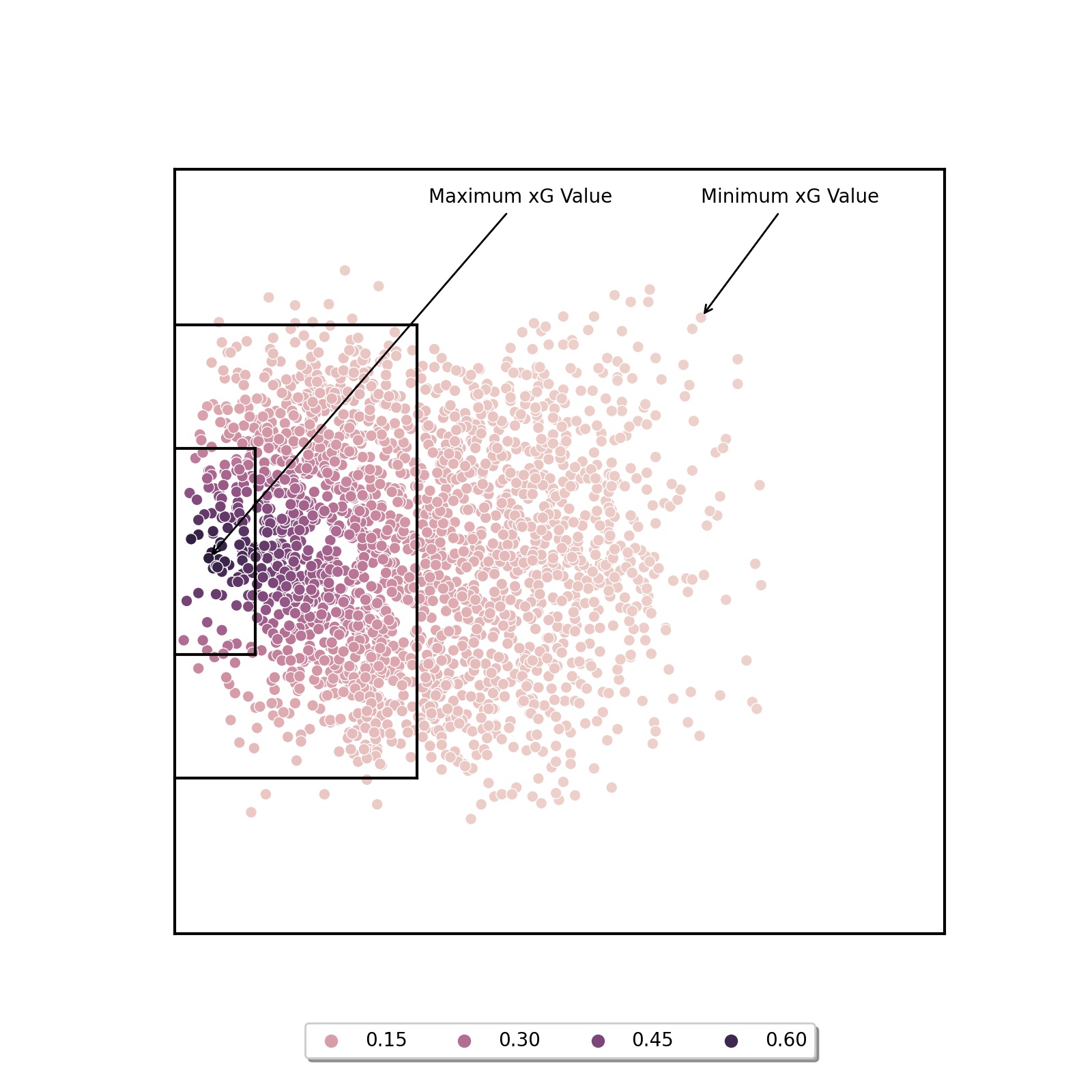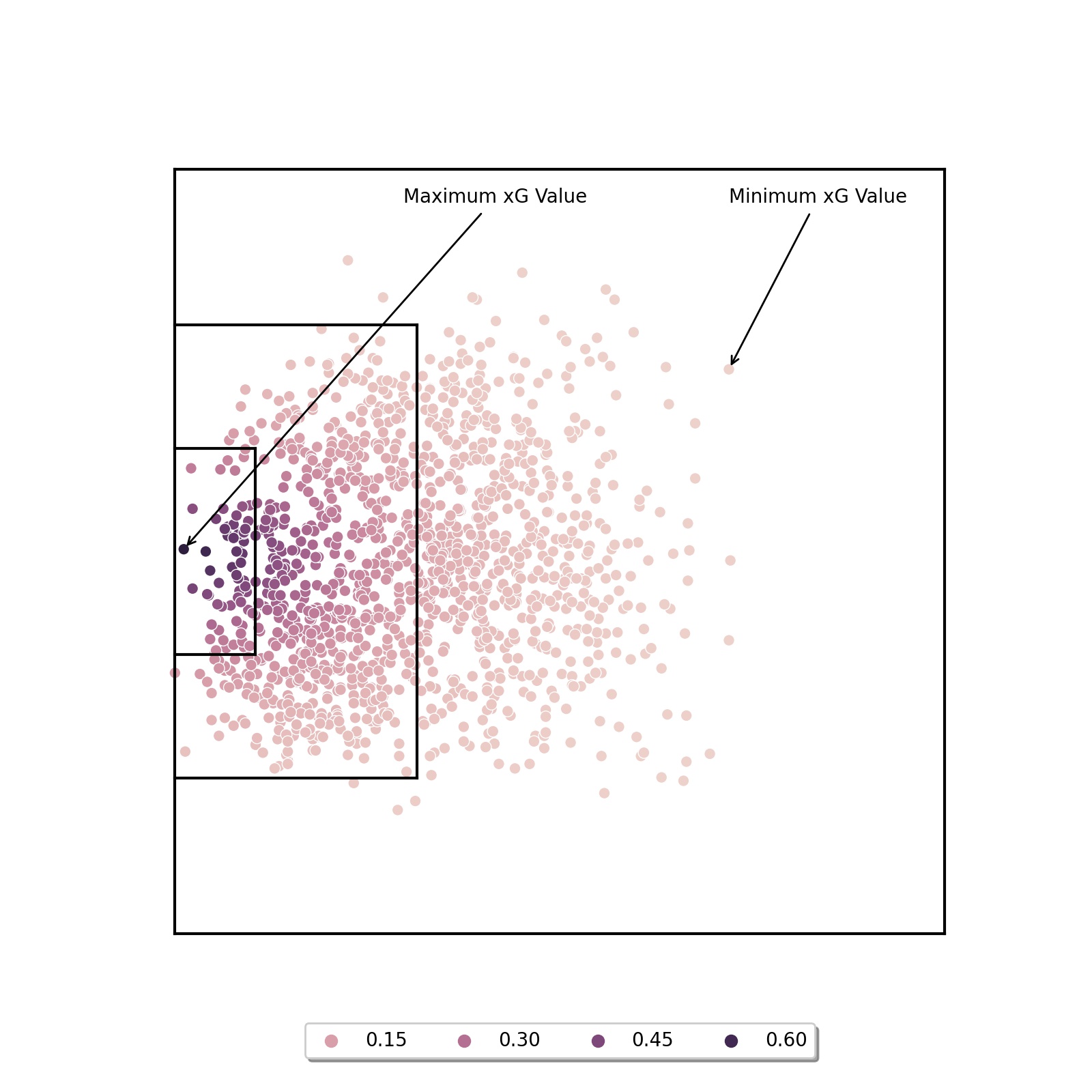 Try clicking on different parts of the pitch below to explore how expected goals vary based on shot location: