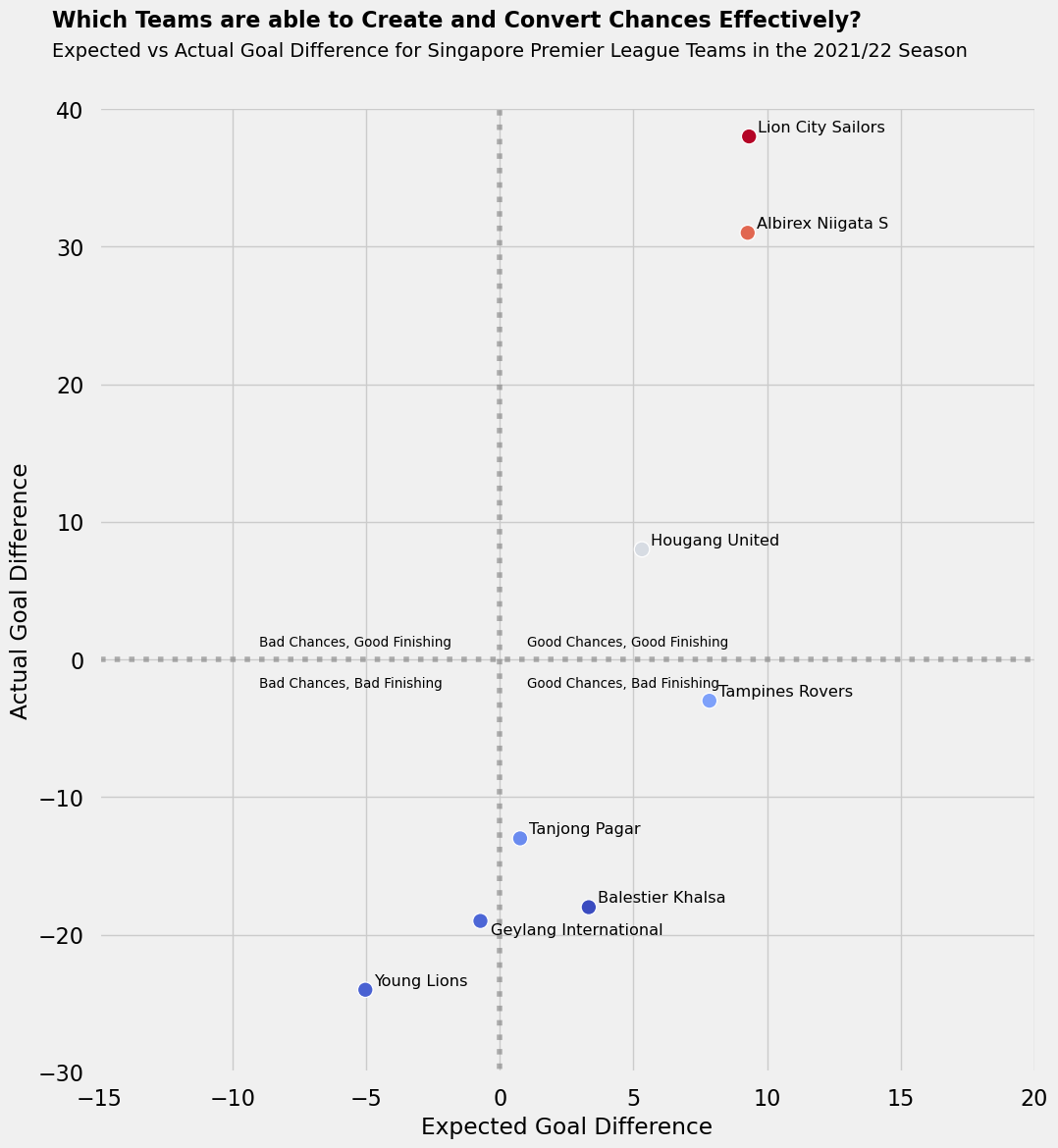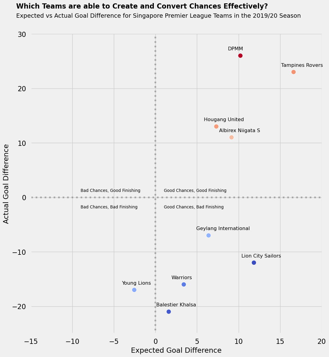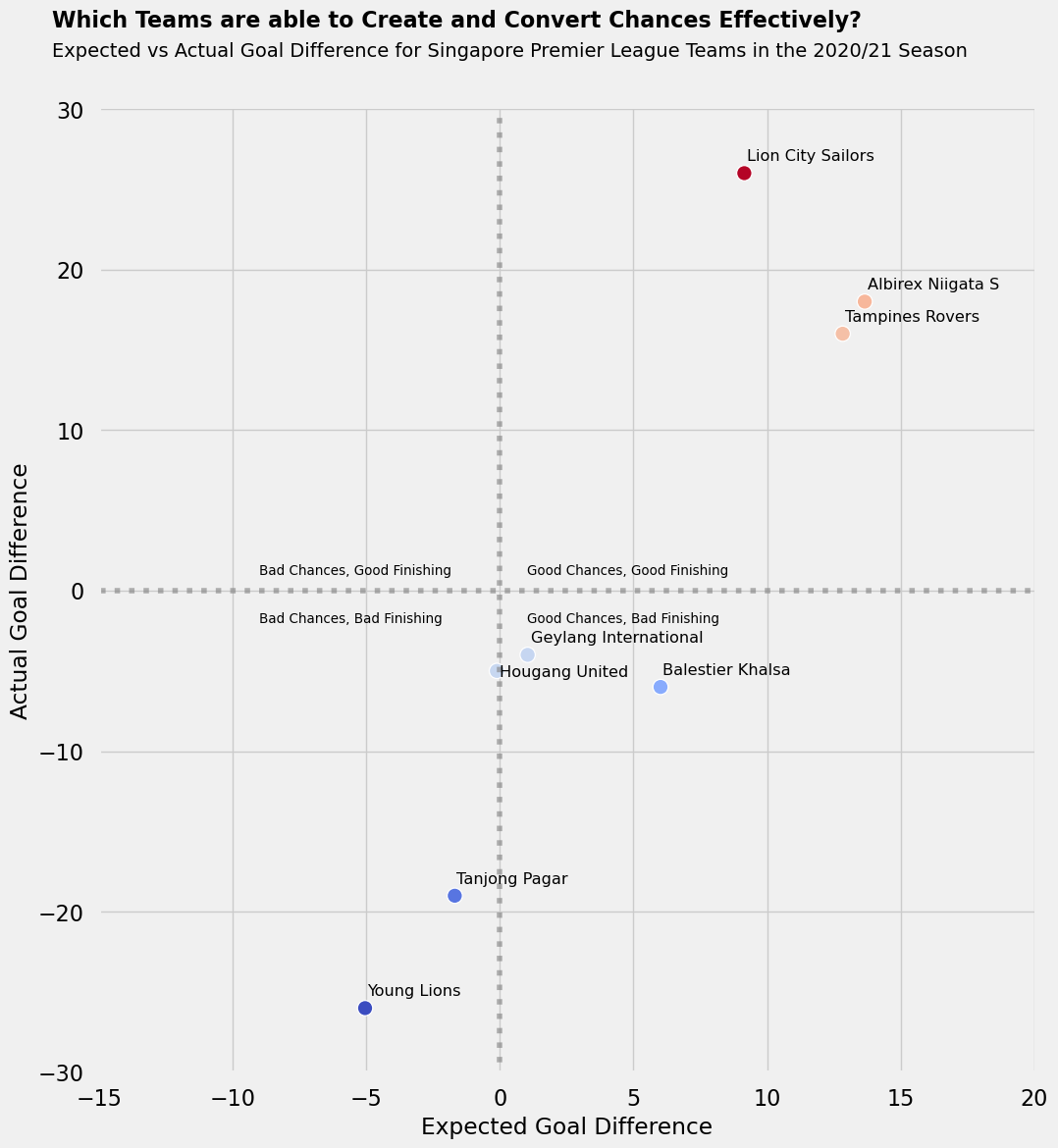 Working with Assoc. Prof John Komar from NIE2, we built an Expected Goals model from the last three seasons of Data in the Singapore Premier League, and applied it on top of research conducted by another URECA student to identify which styles of play are effective in Singapore and which teams use them the most.